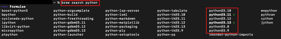 설치한 python을 python@버전으로 입력하지 않고 사용할 수 있는 이유는 설치 과정에서 python@버전을 python3으로 심볼릭 링크 하기 때문이다